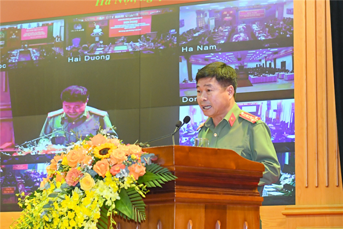 Toàn cảnh hội nghị tại điểm cầu Hội trường Bộ Công an.
