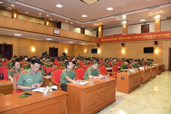 Các đại biểu dự hội nghị tại điểm cầu Bộ Công an.