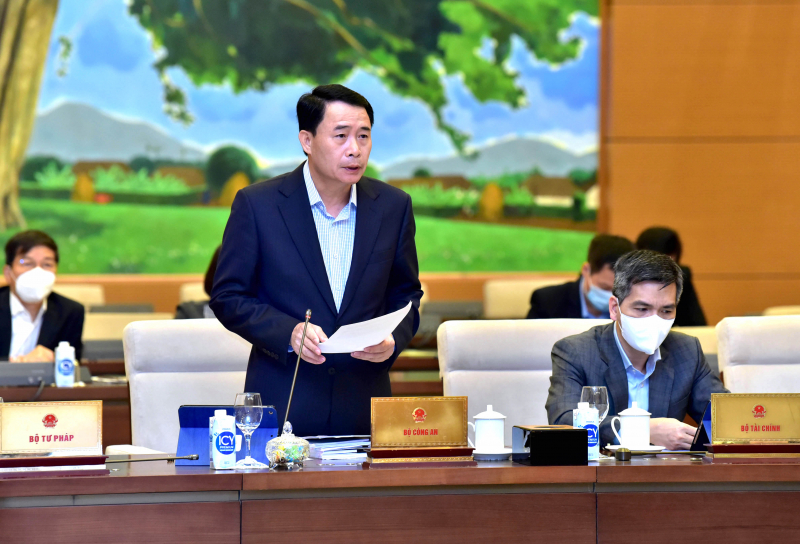 Thứ trưởng Phạm Đức Long trình bày tờ trình tại phiên họp.