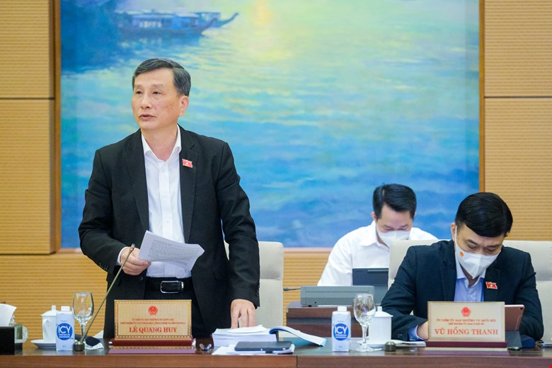 Chủ nhiệm Ủy ban KH,CN&MT Lê Quang Huy trình bày báo cáo thẩm tra.