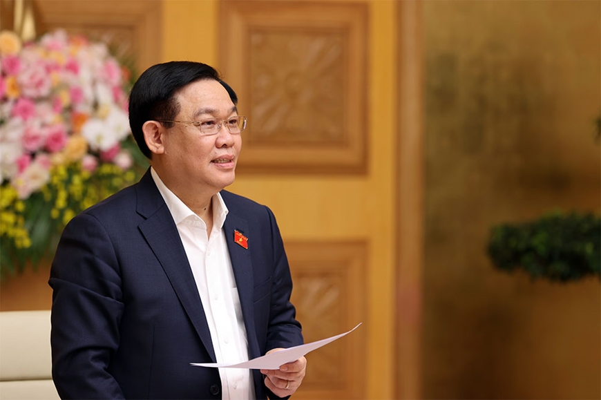 Chủ tịch Quốc hội Vương Đình Huệ phát biểu tại cuộc họp. |