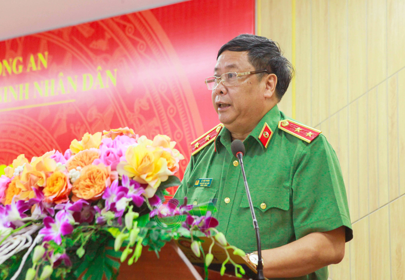 Trung tướng Lê Quốc Hùng - Ủy viên Trung ương Đảng, Ủy viên Đảng ủy Công an Trung ương, Thứ trưởng Bộ Công an phát biểu chỉ đạo tại buổi Lễ
