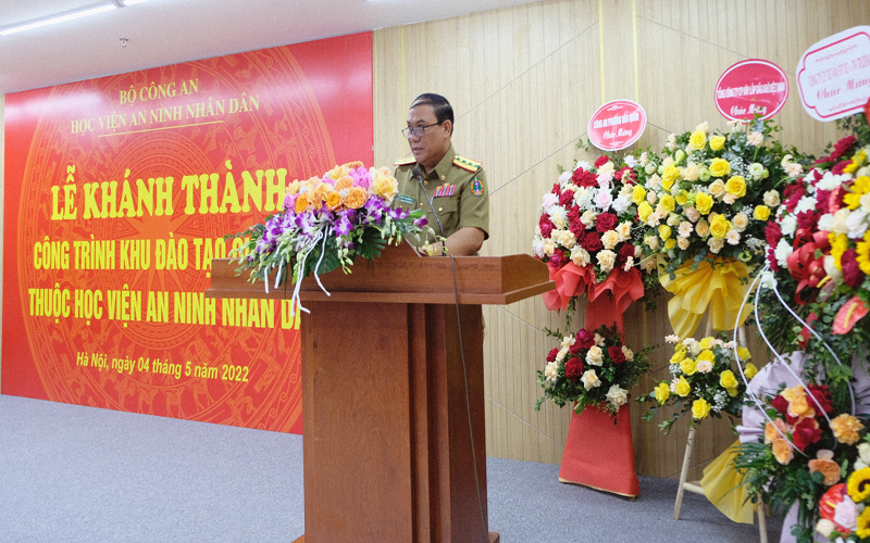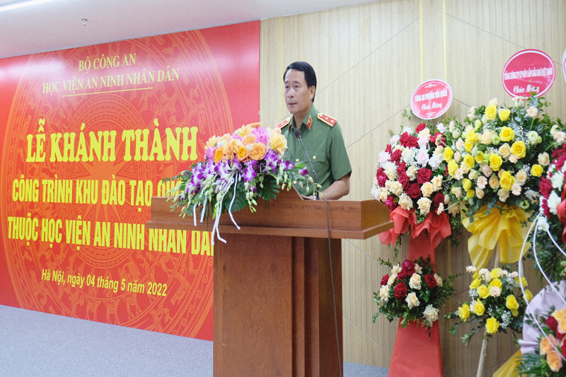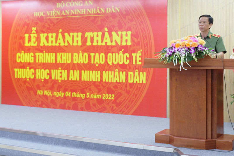 Phát biểu tại Lễ Khánh thành, Trung tướng PGS.TS Lê Văn Thắng - Bí thư Đảng ủy, Giám đốc Học viện ANND khẳng định: Sau gần 6 năm tích cực triển khai thi công, Học viện ANND và các đơn vị nhà thầu, thiết kế, giám sát, thi công và các đơn vị chức năng đã từng bước khắc phục khó khăn, đặc biệt là ảnh hưởng của dịch bệnh COVID - 19 trong giai đoạn thi công hoàn thiện công trình, đến nay, công trình đã chính thức hoàn thành. Khu đào tạo Quốc tế gồm 01 khối nhà chính với 12 tầng nổi, 01 tầng bán hầm, hệ thống điện, nước, phòng cháy, chữa cháy đồng bộ, hệ thống thang máy, phòng học hiện đại, khoa học; đảm bảo điều kiện cơ sở vật chất để phục vụ nhu cầu học tập, ăn, ở, sinh hoạt cho 600 Lưu học viên Quốc tế tại Học viện ANND.