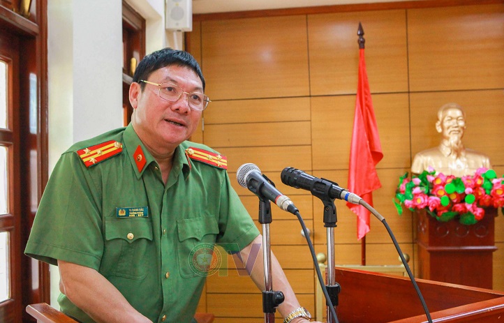 Thượng tá Tạ Đăng Sắc, Trưởng phòng PA01 - Công an tỉnh Bắc Ninh - đại diện cho học viên khóa học phát biểu cảm tưởng tại Lễ Khai giảng.