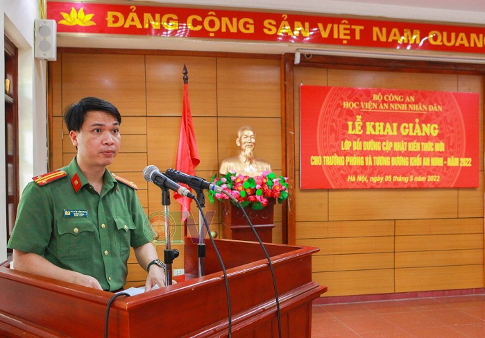 Đồng chí Phó Giám đốc Học viện tin tưởng rằng, dưới sự chỉ đạo sát sao của lãnh đạo Bộ Công an, Cục Đào tạo, sự phối hợp chặt chẽ của các đơn vị chức năng thuộc Bộ Công an và Công an các đơn vị, địa phương; nỗ lực cố gắng của mỗi học viên cùng uy tín, bề dày kinh nghiệm tổ chức các khóa bồi dưỡng của Học viện ANND, khoá học sẽ hoàn thành xuất sắc chương trình đào tạo và đạt kết quả cao nhất, đáp ứng yêu cầu công tác đào tạo, bồi dưỡng cán bộ Công an nhân dân trong tình hình mới.