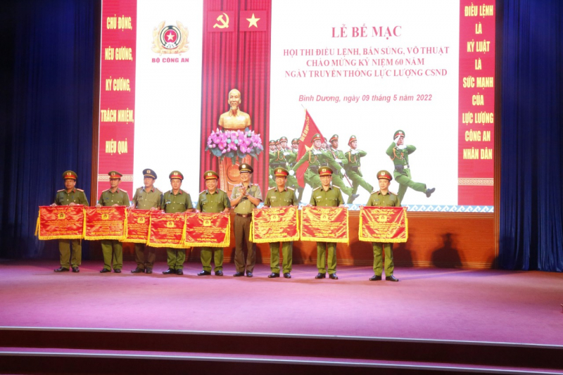 Chiều 9/5, Hội thi điều lệnh, bắn súng, võ thuật Công an nhân dân chào mừng kỷ niệm 60 năm Ngày truyền thống lực lượng Cảnh sát nhân dân, bảng thi số 7 diễn ra tại Bình Dương đã bế mạc.