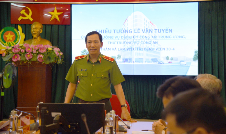 Thiếu tướng Lê Văn Tuyến, Thứ trưởng Bộ Công an đã có buổi làm việc với Bệnh viện 30-4, Bộ Công an vào chiều 12/5/2022.