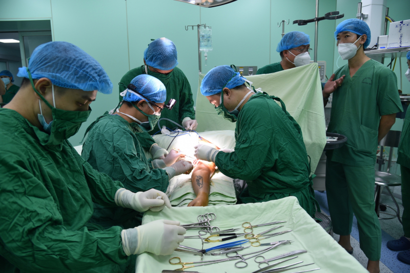 Các Y bác sĩ Bệnh viện 30-4 trong một ca mổ vi phẫu cánh tay cho bệnh nhân.