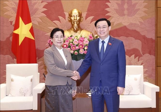 Chủ tịch Quốc hội Vương Đình Huệ tiếp Chánh án Toà án nhân dân tối cao Lào. Ảnh: TTXVN |
