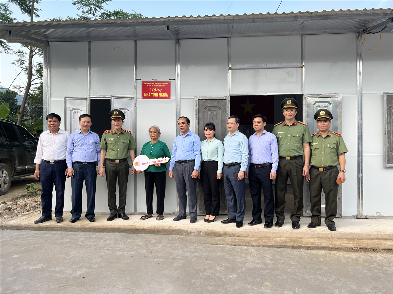 Chiều 11/5/2022, tại hai xã Minh Thanh và Trung Yên, huyện Sơn Dương, tỉnh Tuyên Quang, Bộ Công an, Ngân hàng Nhà nước Việt Nam phối hợp với Tỉnh ủy, Hội đồng nhân dân, Ủy ban nhân dân, Ủy ban Mặt trận Tổ quốc tỉnh Tuyên Quang và các đơn vị tài trợ tổ chức Lễ trao tặng nhà mẫu và kinh phí hỗ trợ xây dựng nhà cho hộ nghèo, khó khăn về nhà ở trên địa bàn tỉnh Tuyên Quang.