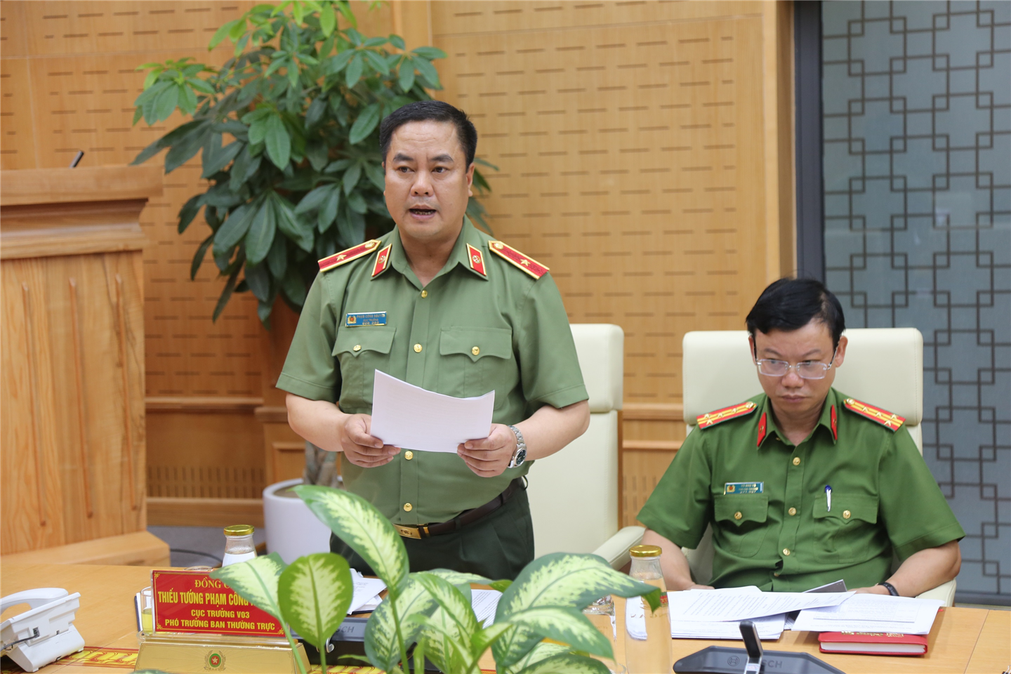 Thiếu tướng Phạm Công Nguyên công bố các quyết định tại phiên họp.