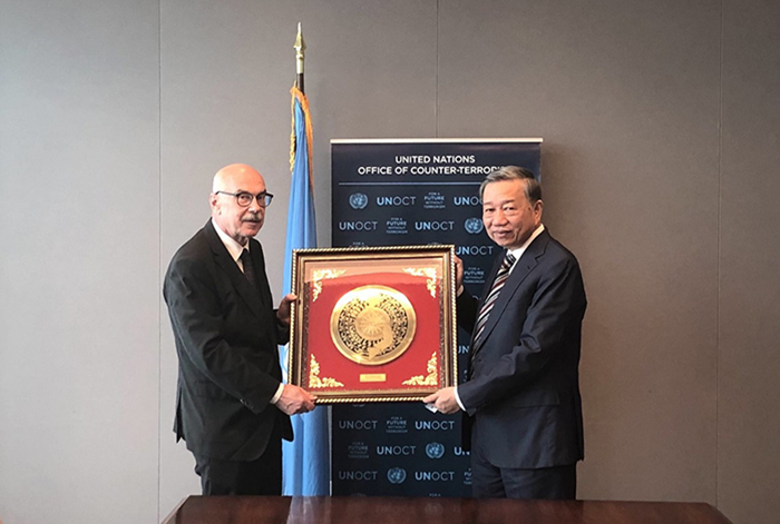 Tại buổi làm việc với ngài Vladimir Voronkov, Phó Tổng Thư ký LHQ phụ trách phòng, chống khủng bố, ngày 16/5, Bộ trưởng Tô Lâm đánh giá cao sự hỗ trợ của LHQ đối với công tác phòng, chống khủng bố và bạo lực cực đoan khu vực Đông Nam Á nói chung và đối với Việt Nam nói riêng.