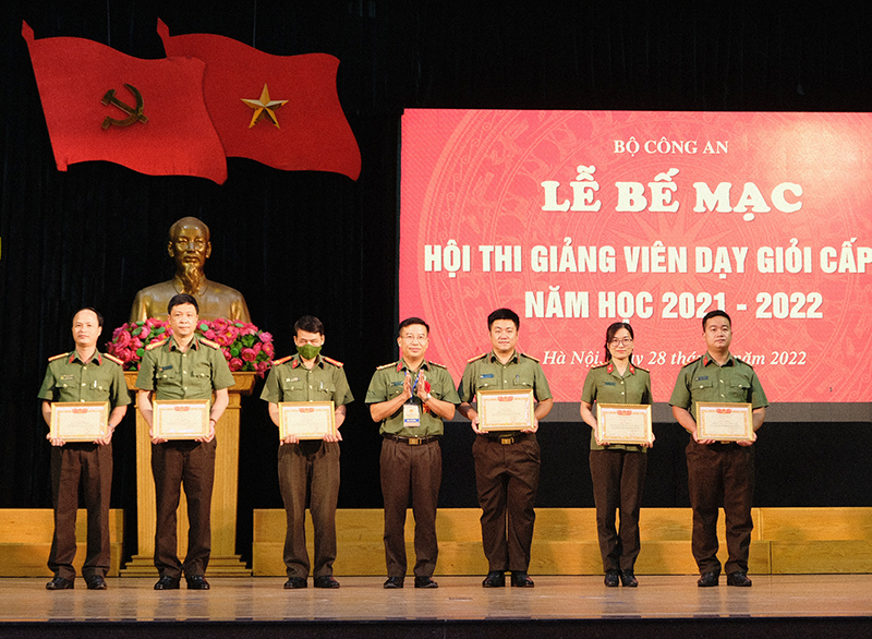 Trên cơ sở điểm đánh giá của Ban Giám khảo, Ban tổ chức đã báo cáo và được Bộ trưởng Bộ Công an, Cục trưởng Cục Đào tạo, Trưởng ban tổ chức ký quyết định khen thưởng cho các tập thể, cá nhân đạt giải, với 06 giải toàn đoàn; 18 giải theo lĩnh vực; 70 giải cá nhân cho các tập thể, giảng viên đạt thành tích xuất sắc tại Hội thi. Cụ thể: 06 giảng viên đạt giải nhất và được nhận Bằng khen của Bộ trưởng Bộ Công an; 21 giảng viên đạt giải nhì và được nhận Giấy khen của Ban tổ chức; 43 giảng viên đạt giải 3 và được nhận giấy khen của Ban tổ chức. Về tập thể: Học viện An ninh nhân dân, Học viện Cảnh sát nhân dân đạt đồng giải nhất toàn đoàn và được nhận Bằng khen của Bộ trưởng Bộ Công an; Trường Đại học PCCC đạt giải nhì và được nhận giấy khen của Ban tổ chức; Học viện Chính trị CAND, Đại học An ninh, Đại học Cảnh sát đồng giải 3 và được nhận giấy khen của Ban tổ chức. Đồng thời, Ban tổ chức cũng trao giấy khen cho thành viên các Hội đồng của Hội thi và các đơn vị, cá nhân tham gia phục vụ Hội thi.