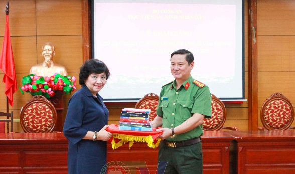 GS.TS Nguyễn Thái Yên Hương - Nguyên Phó Giám đốc Học viện Ngoại giao tặng sách cho Học viện.