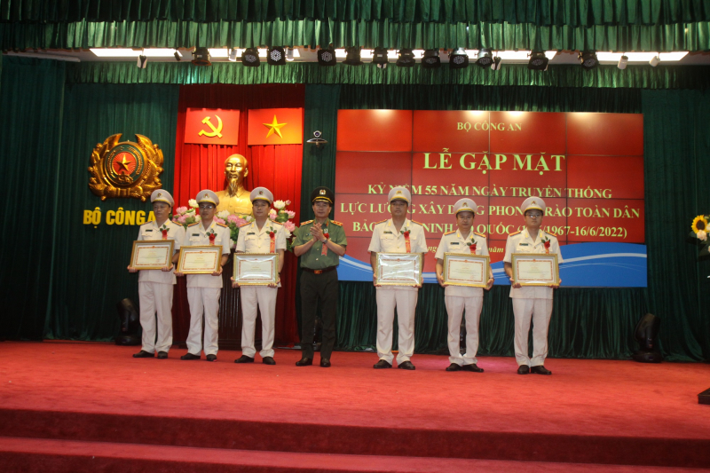 Thứ trưởng Lê Quốc Hùng và các đại biểu tại Lễ Gặp mặt kỷ niệm 55 năm Ngày truyền thống lực lượng Xây dựng phong trào bảo vệ ANTQ.