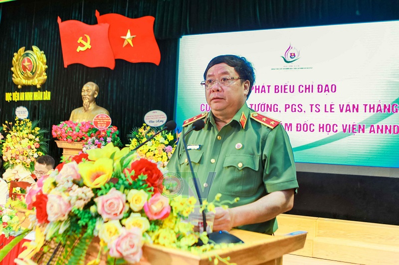 Trung tướng, PGS. TS Lê Văn Thắng - Bí thư Đảng ủy, Giám đốc Học viện ANND phát biểu chỉ đạo tại Đại hội.