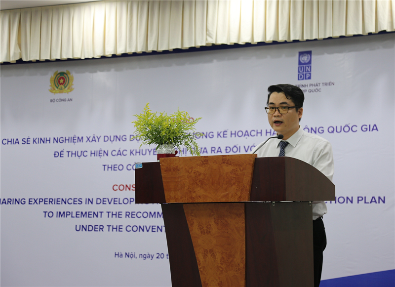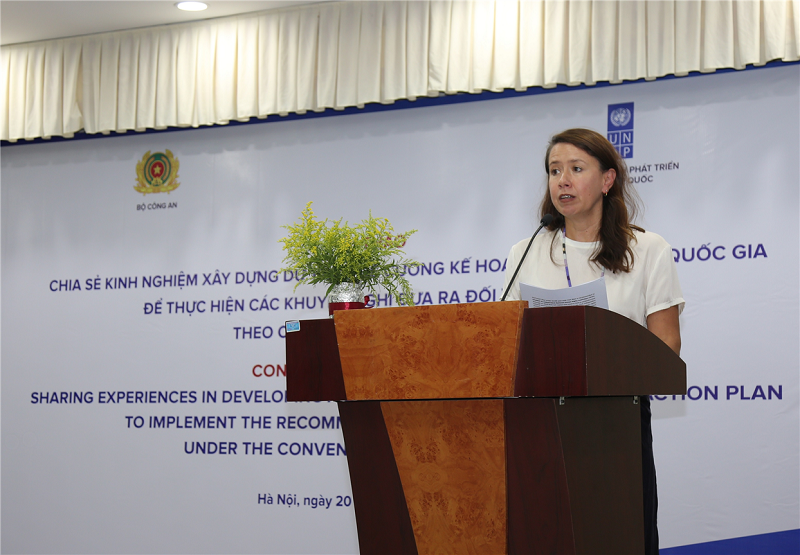 Phát biểu tại Hội thảo, bà Diana Toress, Trợ lý Đại diện Thường trú UNDP tại Việt Nam đã bày tỏ sự ghi nhận, ủng hộ nỗ lực thực hiện, thúc đẩy nhân quyền ở Việt Nam và hoan nghênh những nỗ lực đang thực hiện của Bộ Công an Việt Nam nhằm xây dựng một kế hoạch cụ thể để phối hợp và thực hiện Công ước chống tra tấn.