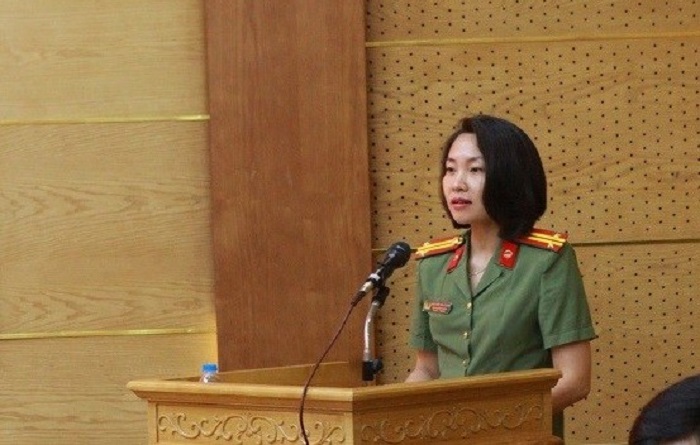Thượng tá Phạm Thị Phương Lan - Đảng ủy viên, Phó Chủ nhiệm Thường trực UBKT Đảng ủy Học viện, Thủ trưởng Cơ quan UBKT Đảng ủy Học viện ANND trình bày Báo cáo sơ kết tại Hội nghị.
