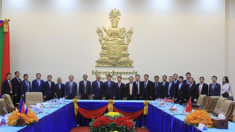 Thứ trưởng Lương Tam Quang và Quốc vụ khanh Mao Chandara cùng các đại biểu tại buổi làm việc.
