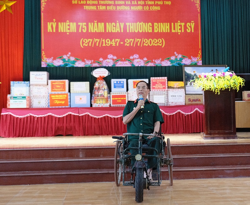 Đồng chí Vũ Đình Tiến – Chủ tịch Hội đồng thương bệnh binh tại Trung tâm phát biểu tại buổi tặng quà.