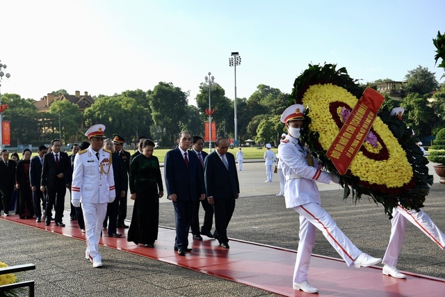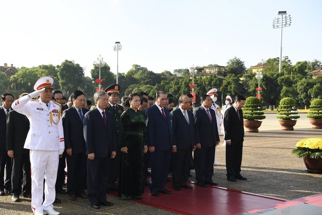 Tiếp đó, các đồng chí lãnh đạo Đảng, Nhà nước đã tới đặt vòng hoa, vào Lăng viếng Chủ tịch Hồ Chí Minh.