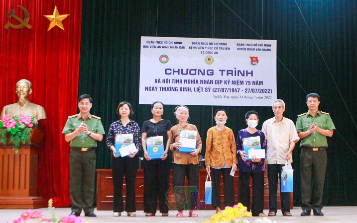 Cùng với các hoạt động ý nghĩa, Đoàn Học viện ANND đã tổ chức dâng hương, dâng hoa tại Nhà tưởng niệm liệt sĩ Tô Hiệu; thăm hỏi, tặng quà các gia đình chính sách, các thương bệnh binh, thân nhân gia đình liệt sĩ và 03 mẹ Việt Nam Anh hùng Đỗ Thị Bón, Lê Thị Chục và Nguyễn Thị Giới tại huyện Văn Giang, tỉnh Hưng Yên.