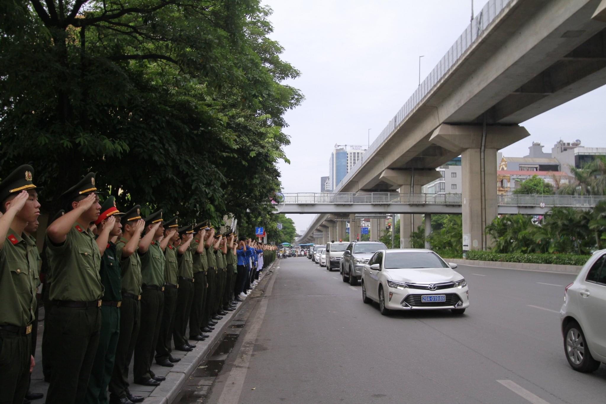 Để tri ân chiến công và bày tỏ niềm tiếc thương sâu sắc đến các đồng chí, ngay từ sớm, 150 đoàn viên thanh niên Học viện An ninh nhân dân cùng cán bộ, chiến sỹ Công an phường Văn Quán đã thực hiện nghi thức tiễn biệt các anh tại đường Trần Phú, quận Hà Đông, thành phố Hà Nội.
