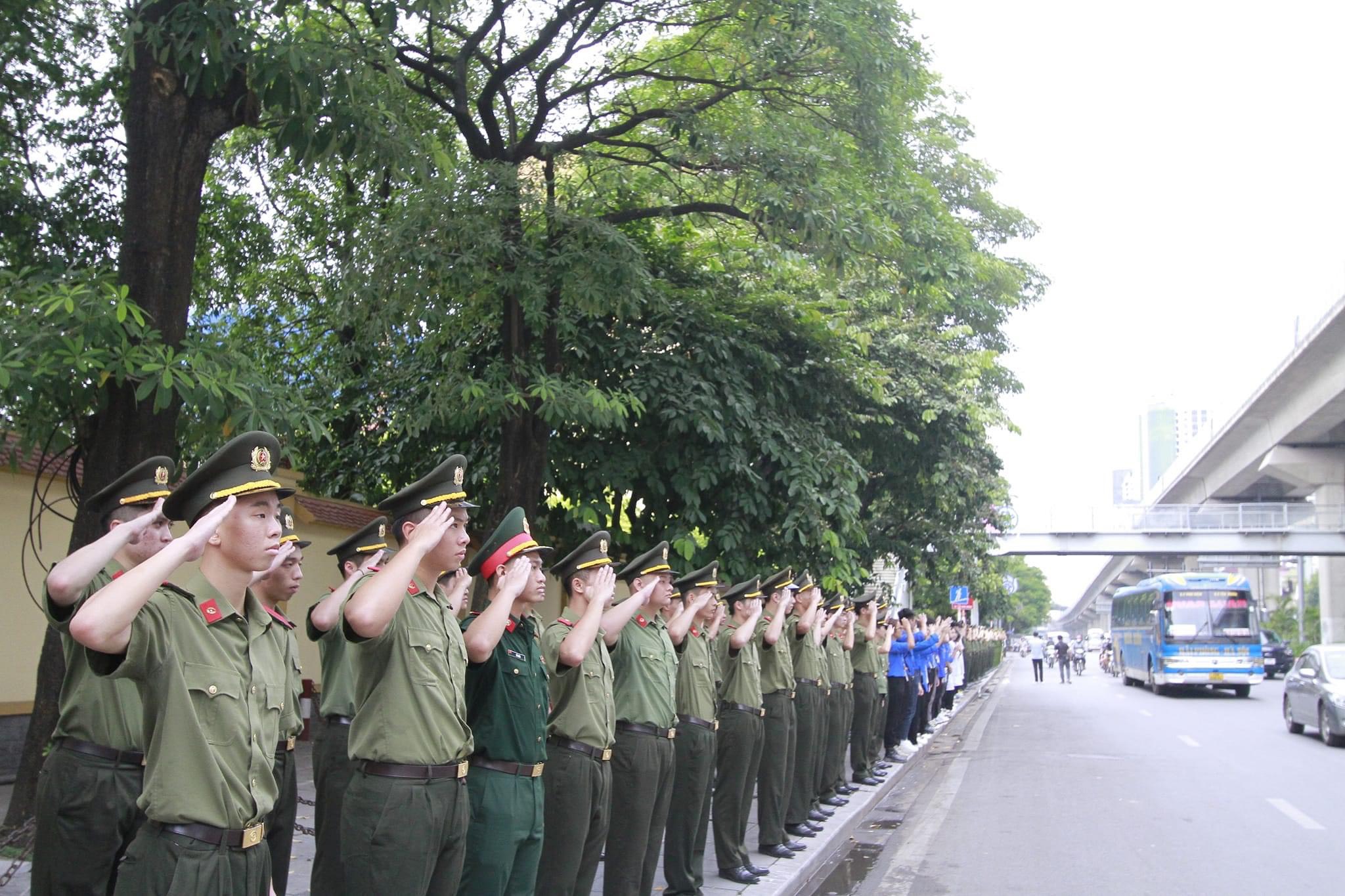 Học viên Học viện An ninh nhân dân thực hiện nghi thức tiễn biệt các anh tại đường Trần Phú, quận Hà Đông, thành phố Hà Nội.