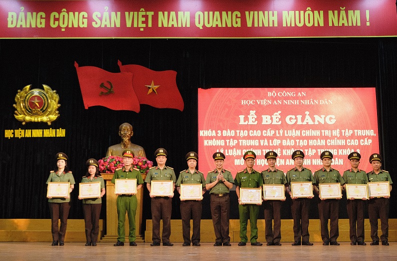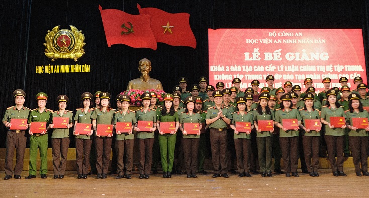 Lễ Bế giảng khóa Cao cấp LLCT hệ tập trung, không tập trung và đào tạo hoàn chỉnh Cao cấp LLCT hệ không tập trung Khoá 3 mở tại Học viện ANND diễn ra thành công tốt đẹp. Hy vọng rằng, khi trở về công tác tại Công an các đơn vị, địa phương, học viên sẽ vận dụng tốt các kiến thức đã được học vào thực tiễn nhằm đáp ứng yêu cầu nhiệm vụ chính trị trong tình hình mới, góp phần vào công tác xây dựng Đảng, xây dựng lực lượng Công an nhân dân Cách mạng, chính quy, tinh nhuệ, hiện đại./.
