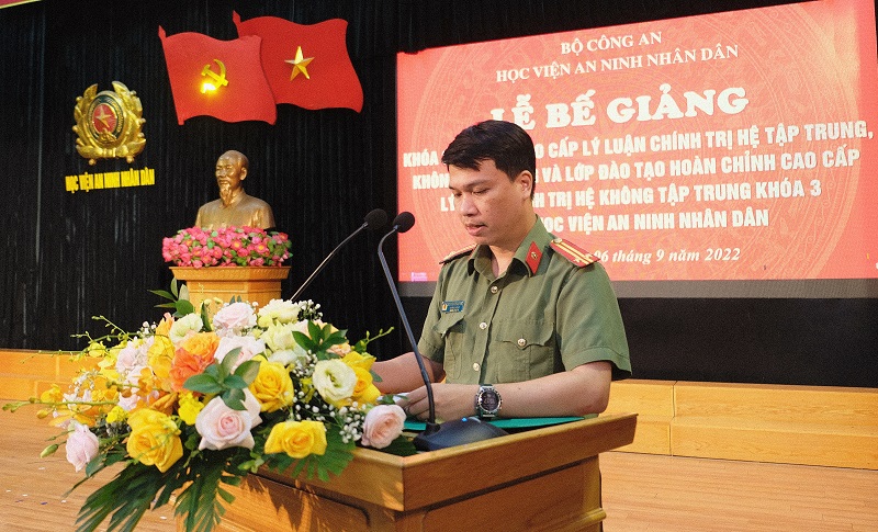 Ngày 06/9/2022, Học viện An ninh nhân dân (ANND) tổ chức Lễ Bế giảng Khóa Cao cấp lý luận chính trị (LLCT) hệ tập trung, không tập trung và đào tạo hoàn chỉnh Cao cấp LLCT hệ không tập trung Khoá 3 mở tại Học viện.