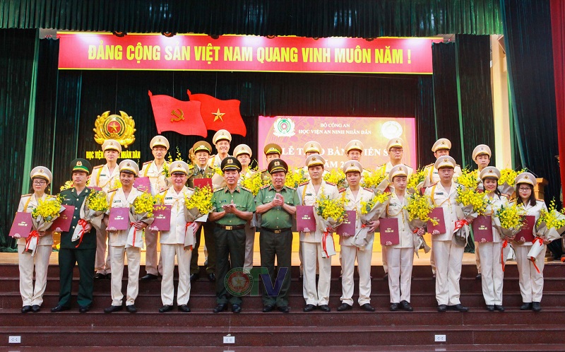 Tại buổi Lễ, 23 đồng chí tân tiến sĩ đã được Thượng tướng, PGS.TS Trần Quốc Tỏ, Ủy viên Ban chấp hành Trung ương Đảng - Thứ trưởng Bộ Công an; Trung tướng, PGS.TS Lê Văn Thắng, Giám đốc Học viện ANND tặng hoa chúc mừng và trao bằng tiến sĩ.