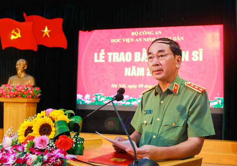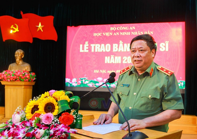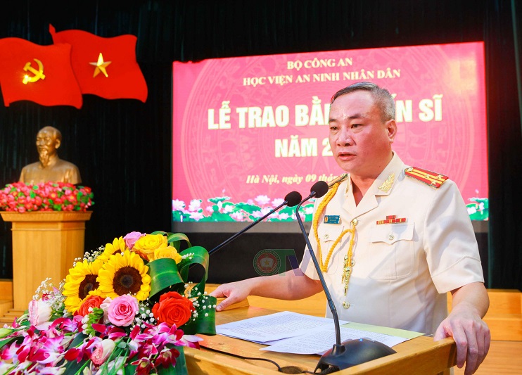 Phát biểu chỉ đạo tại buổi Lễ, Thượng tướng, PGS.TS Trần Quốc Tỏ, Ủy viên Ban Chấp hành Trung ương Đảng, Thứ trưởng Bộ Công an đã biểu dương, chúc mừng các đồng chí được trao bằng tiến sĩ. Đồng chí khẳng định, Đảng ủy Công an Trung ương, lãnh đạo Bộ Công an luôn xác định đào tạo sau đại học là nhiệm vụ quan trọng và luôn dành sự quan tâm, chỉ đạo sát sao. Học viện ANND là cơ sở giáo dục đại học trọng điểm của ngành Công an, luôn chú trọng nội dung, chương trình đào tạo, tiên phong trong mở các ngành đào tạo; đổi mới về phương pháp đào tạo gắn liền, gắn kết chặt chẽ giữa đào tạo thực tiễn với lý luận và công tác chiến đấu của ngành Công an.