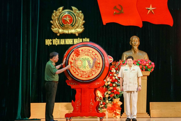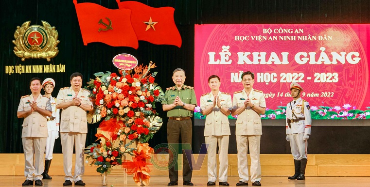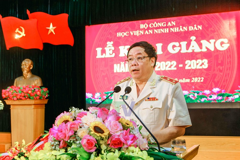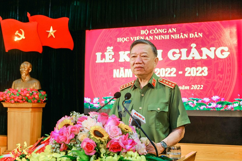 Phát biểu chỉ đạo tại Lễ Khai giảng, thay mặt Đảng uỷ Công an Trung ương và lãnh đạo Bộ Công an, Đại tướng, GS.TS Tô Lâm - Ủy viên Bộ Chính trị, Bí thư Đảng ủy Công an Trung ương, Bộ trưởng Bộ Công an gửi lời chúc mừng, ghi nhận và đánh giá cao những nỗ lực, cố gắng, đổi mới, sáng tạo, đồng thời biểu dương những thành tích mà tập thể lãnh đạo, cán bộ, giảng viên, công nhân viên, học viên Học viện ANND đã đạt được trong năm học vừa qua.