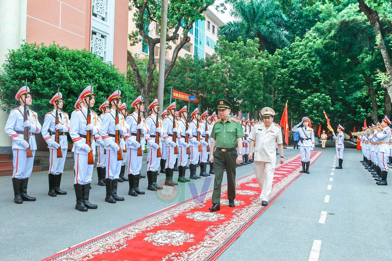 Đại tướng, GS.TS Tô Lâm - Ủy viên Bộ Chính trị, Bí thư Đảng ủy Công an Trung ương, Bộ trưởng Bộ Công an duyệt đội danh dự.