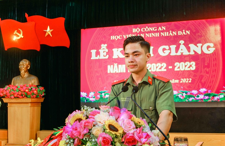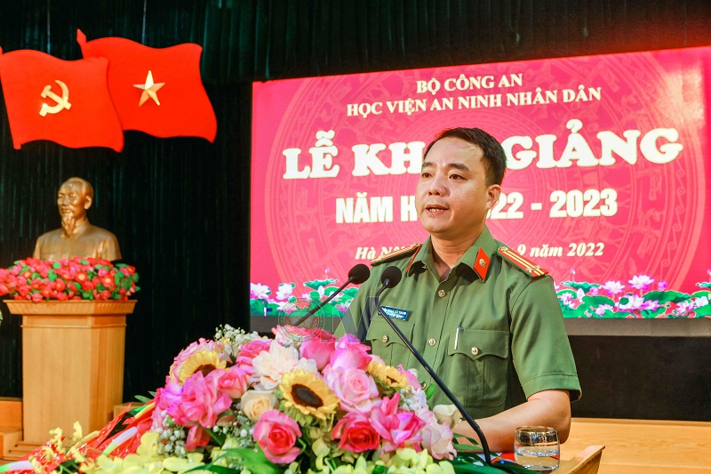Phát biểu tại Lễ Khai giảng, đại diện cho cán bộ, giảng viên Học viện ANND, Trung tá, TS Phan Tất Thành - giảng viên Khoa Nghiệp vụ cơ bản xin hứa, với sứ mệnh cao cả của người thầy sẽ không ngừng cố gắng, nỗ lực, trau dồi kiến thức, khắc phục mọi khó khăn để nâng cao trình độ chuyên môn; rèn luyện, tu dưỡng đạo đức, phẩm chất cách mạng của người giáo viên CAND, đem hết khả năng, trí tuệ, tâm huyết cống hiến cho sự nghiệp giáo dục, đào tạo của Học viện ANND nói riêng và ngành Công an nói chung.