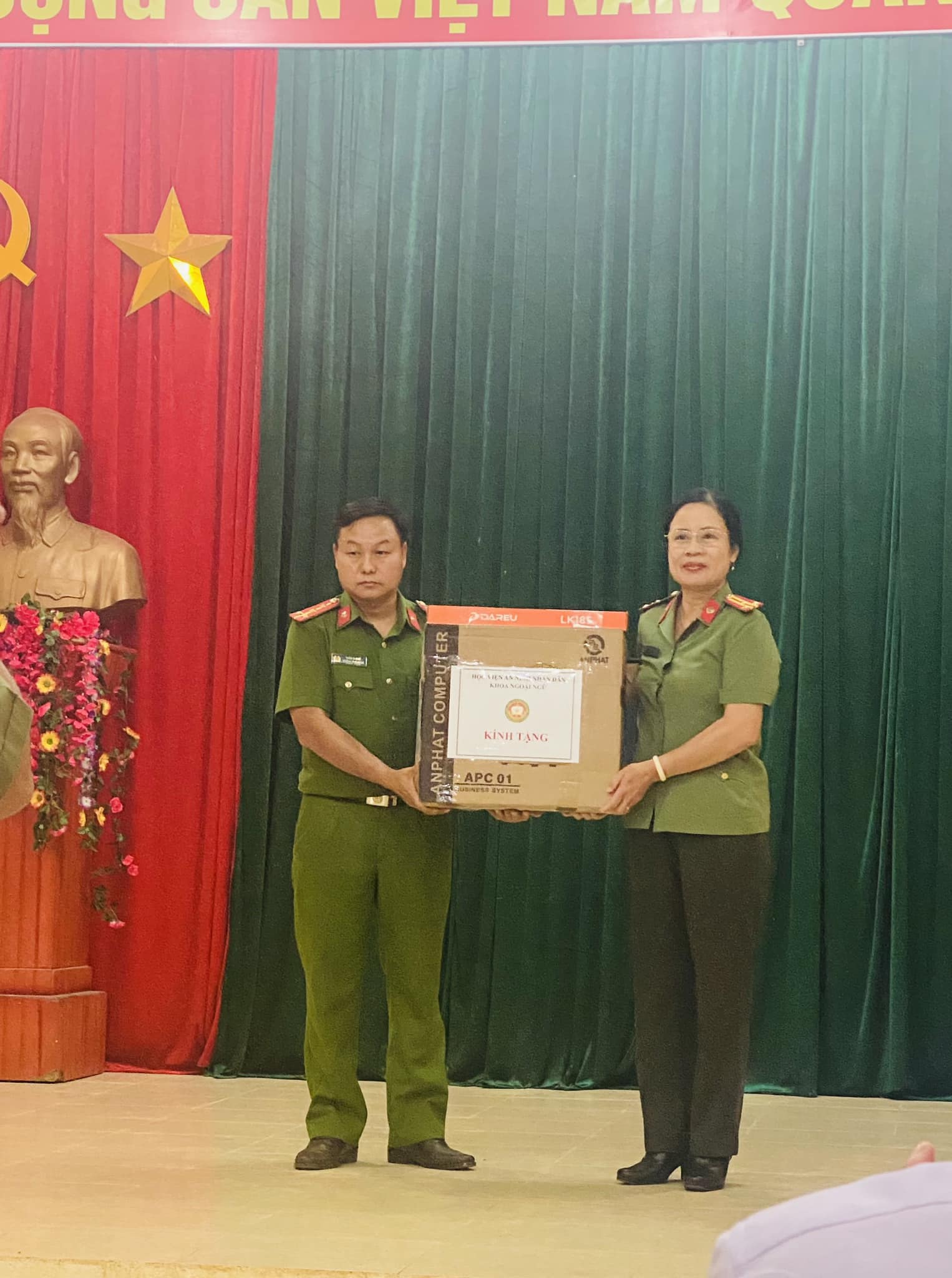 Đoàn công tác tặng bộ máy tính cho Công an xã Co Tòng