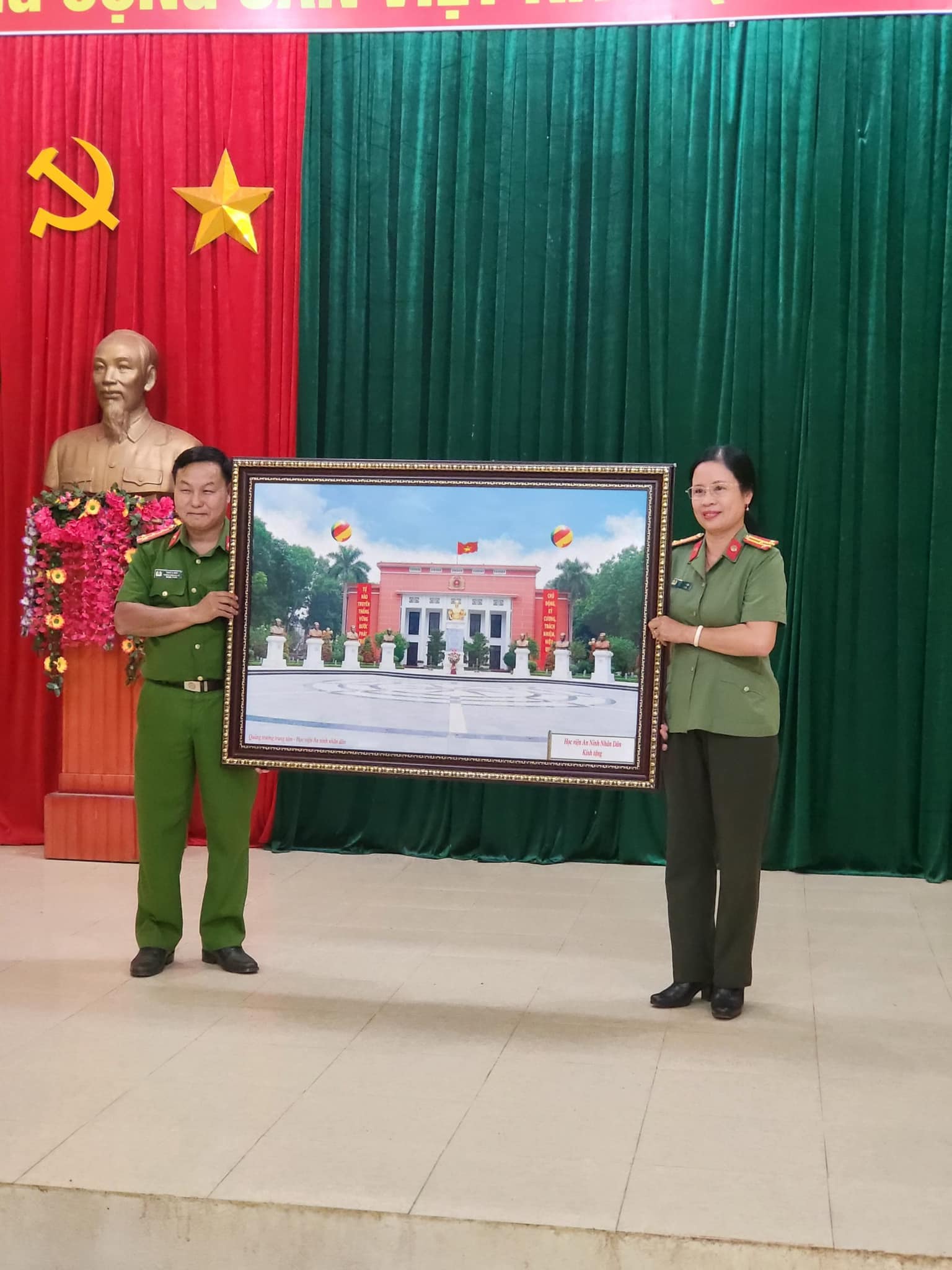 Đoàn công tác tặng tranh lưu niệm cho Công an xã Co Tòng