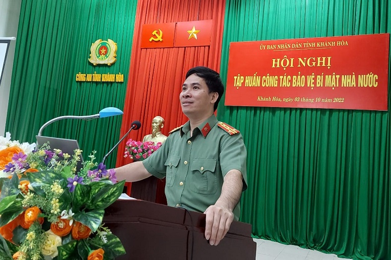 Tham gia Hội nghị tập huấn “Công tác bảo vệ bí mật nhà nước” có 200 cán bộ thuộc các cơ quan, đơn vị trên địa bàn tỉnh Khánh Hòa. Nội dung Hội nghị tập huấn gồm 02 chuyên đề: Những vấn đề cơ bản cần quán triệt của pháp luật về bảo vệ bí mật nhà nước; nhận diện các hình thức lộ, mất bí mật nhà nước và những vấn đề cần chú ý trong bảo vệ bí mật nhà nước.