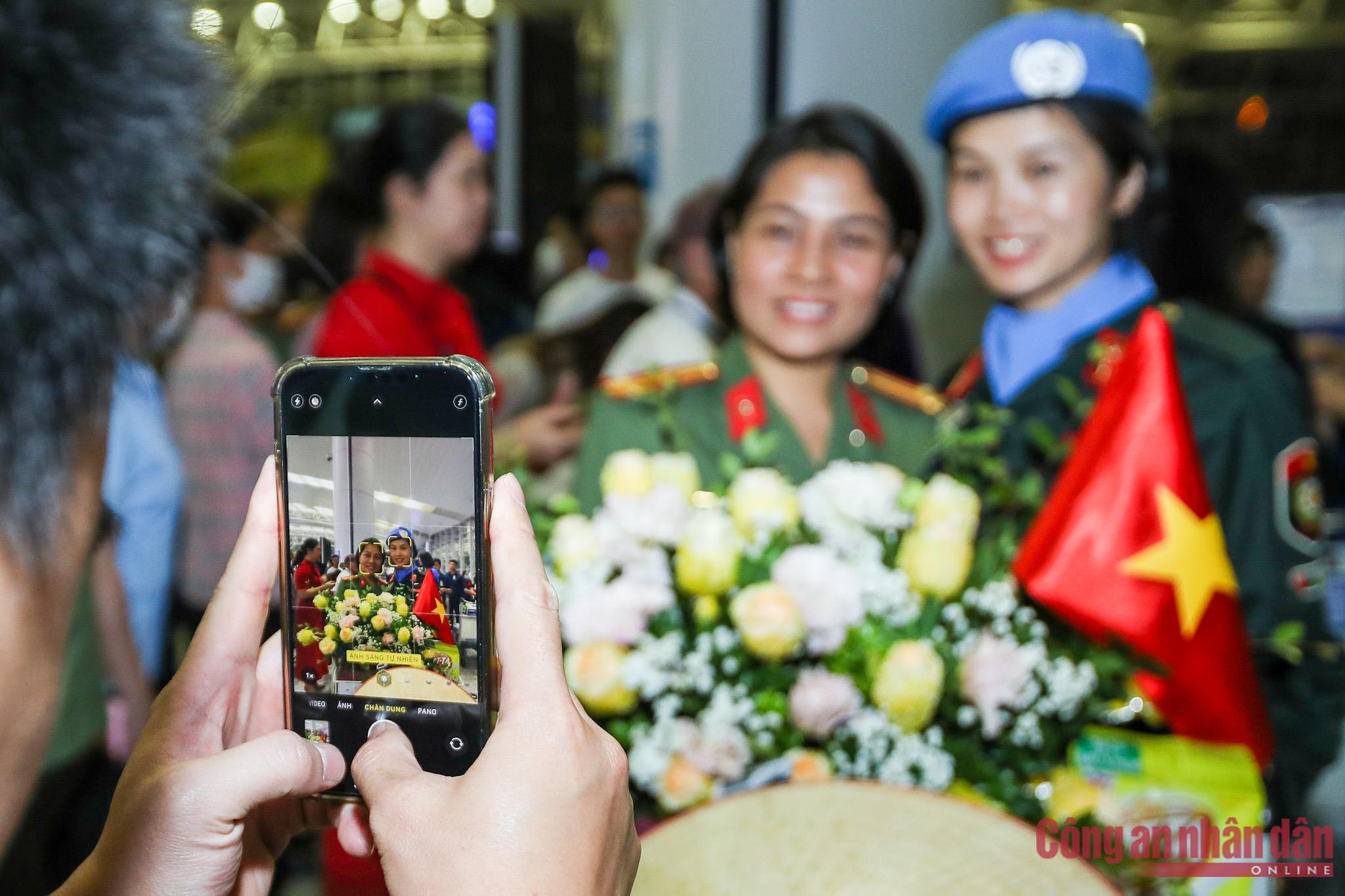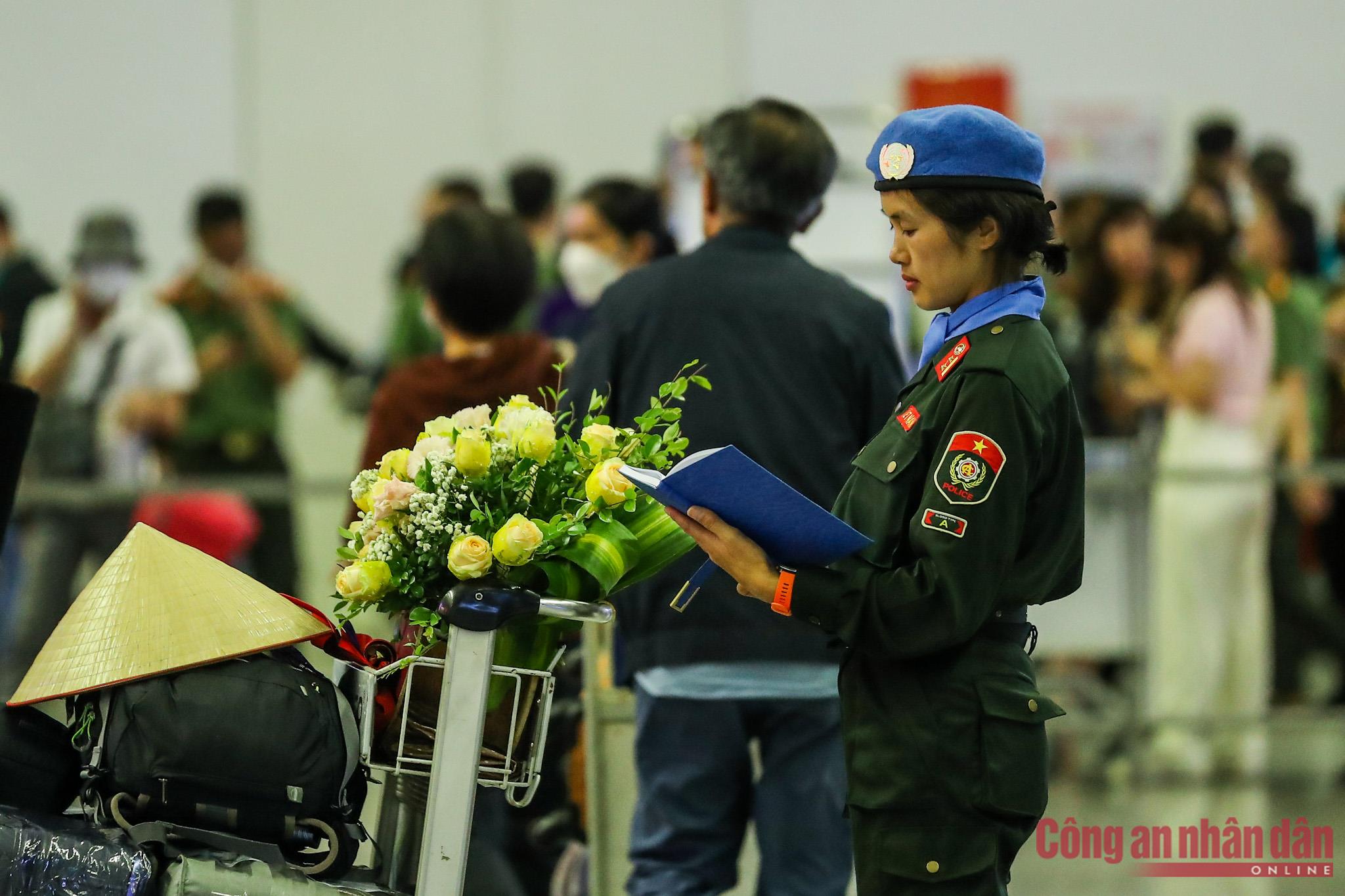 Trung tá Lương Thị Trà Vinh cùng đồng đội chụp ảnh lưu niệm tại sân bay. Chia sẻ với PV báo CAND, Trung tá Lương Thị Trà Vinh cảm thấy rất vinh dự và tự hào khi được Đảng uỷ Công an Trung ương, lãnh đạo Bộ Công an tin tưởng, giao phó nhiệm vụ thiêng liêng này. Chị cũng cảm thấy mình rất may mắn khi có một hậu phương vững chắc luôn ủng hộ chị.