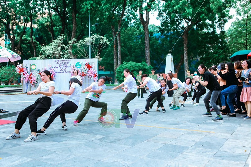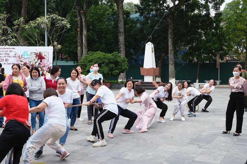 Chương trình giao lưu gồm các phần thi kéo co, chạy tiếp sức, nhảy bao bố với sự tham gia thi, tranh tài của các đội Hội Phụ nữ cơ sở khối giảng viên; Hội Phụ nữ cơ sở khối đào tạo và nghiên cứu khoa học; Hội Phụ nữ cơ sở khối phòng và các trung tâm; Hội Phụ nữ cơ sở phòng Hậu cần.