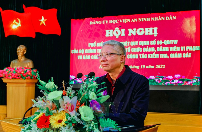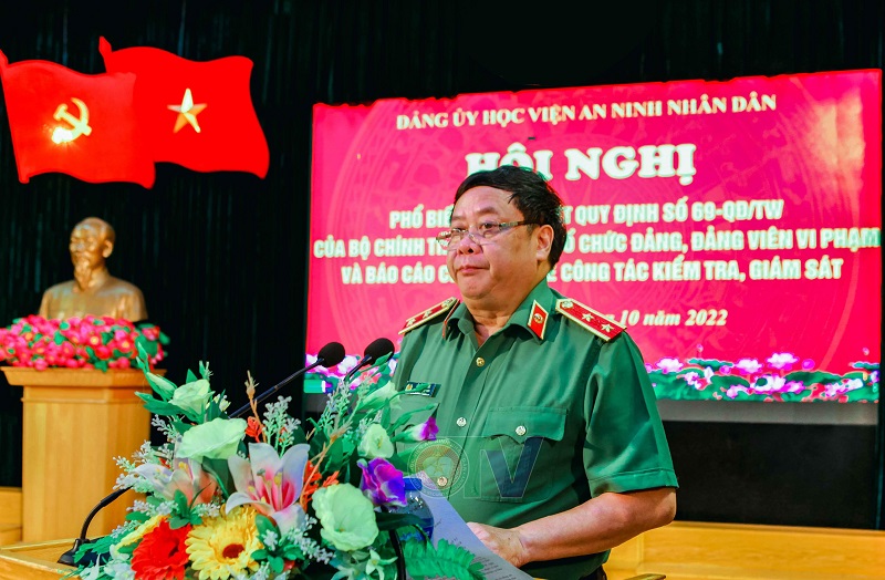 Ngày 21/10/2022, Đảng ủy Học viện An ninh nhân dân (ANND) tổ chức “Hội nghị phổ biến, quán triệt Quy định số 69-QĐ/TW của Bộ Chính trị về kỷ luật tổ chức đảng, đảng viên vi phạm và báo cáo chuyên đề về công tác kiểm tra, giám sát”.