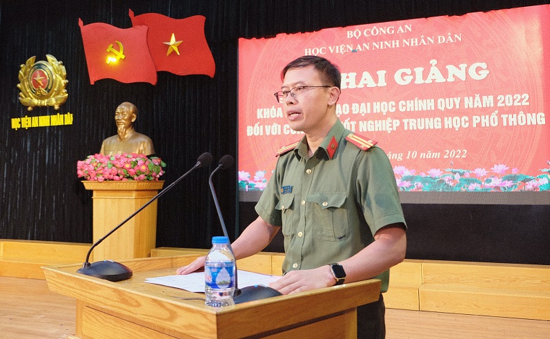 Phát biểu chỉ đạo tại buổi Lễ, đồng chí Phó Giám đốc Học viện yêu cầu các học viên cần nêu cao tinh thần trách nhiệm, chủ động học tập, nghiên cứu để nắm vững kiến thức lý luận. Thực hiện tốt phương châm “Học đi đôi với hành, lý luận gắn liền với thực tiễn”. Nghiêm chỉnh chấp hành điều lệnh, quy chế đào tạo, quản lý học viên và các quy định khác của Bộ Công an và Học viện ANND; tích cực tham gia các cuộc thi tìm hiểu, các cuộc thi nghiên cứu khoa học, phong trào văn nghệ, thể dục thể thao do Học viện, Bộ GD&ĐT, Bộ Công an tổ chức.
