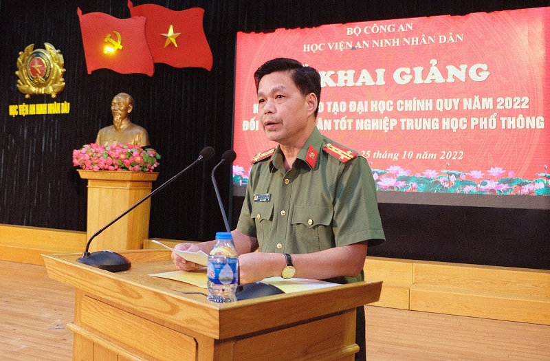 Ngày 25/10/2022, Học viện An ninh nhân dân (ANND) tổ chức Lễ Khai giảng Khóa D54 đào tạo trình độ đại học chính quy tuyển mới công dân tốt nghiệp trung học phổ thông. Trung tướng, PGS.TS Lê Văn Thắng - Giám đốc Học viện ANND đến dự và chủ trì buổi Lễ.