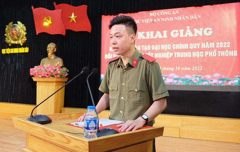 Phát biểu cảm tưởng tại buổi Lễ, học viên Cao Tiến Minh, B2 D54 - đại diện học viên khóa học xin hứa nguyện phấn đấu, cố gắng học tập, rèn luyện vượt qua mọi khó khăn, thử thách để đạt được kết quả học tập cao nhất; thực hiện nghiêm các quy định của Ngành, của Học viện; phát huy vai trò xung kích, thi đua học tập theo Sáu điều Chủ tịch Hồ Chí Minh dạy Công an nhân dân.