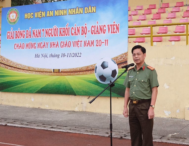 Phát biểu Khai mạc, Đại tá, TS Nguyễn Văn Thiết - Phó Giám đốc Học viện nhấn mạnh, Giải bóng đá nam 7 người khối cán bộ, giảng viên là hoạt động thể dục thể thao thường niên nhằm tăng cường sức khoẻ cho cán bộ, giảng viên, công nhân viên Học viện, góp phần giáo dục toàn diện, xây dựng nếp sống kỷ cương, lành mạnh cho cán bộ, giảng viên, công nhân viên Học viện. Đồng thời khẳng định, qua những giải phong trào, Học viện có điều kiện lựa chọn được những vận động viên ưu tú, có thành tích xuất sắc để đào tạo, bồi dưỡng nâng cao, tham gia thi đấu ở các giải thể thao trong và ngoài ngành Công an.