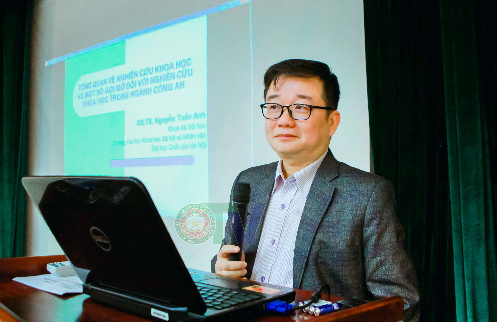 Sau chương trình khai giảng, GS, TS Nguyễn Tuấn Anh - Giảng viên Đại học Quốc gia Hà Nội đã giảng chuyên đề tổng quan về nghiên cứu khoa học và một số gợi mở đối với nghiên cứu khoa học trong Công an nhân dân.