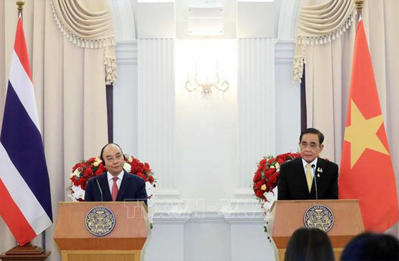 Chủ tịch nước Nguyễn Xuân Phúc và Thủ tướng Vương quốc Thái Lan Prayut Chan-o-cha gặp gỡ báo chí - Ảnh: TTXVN