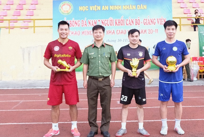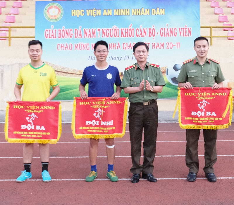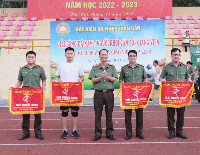 Giải bóng đá nam 7 người khối cán bộ, giảng viên Học viện ANND năm học 2022 - 2023 đã thành công tốt đẹp. Kết thúc Giải, Ban tổ chức đã trao giải cho các đội bóng. Cụ thể như sau: