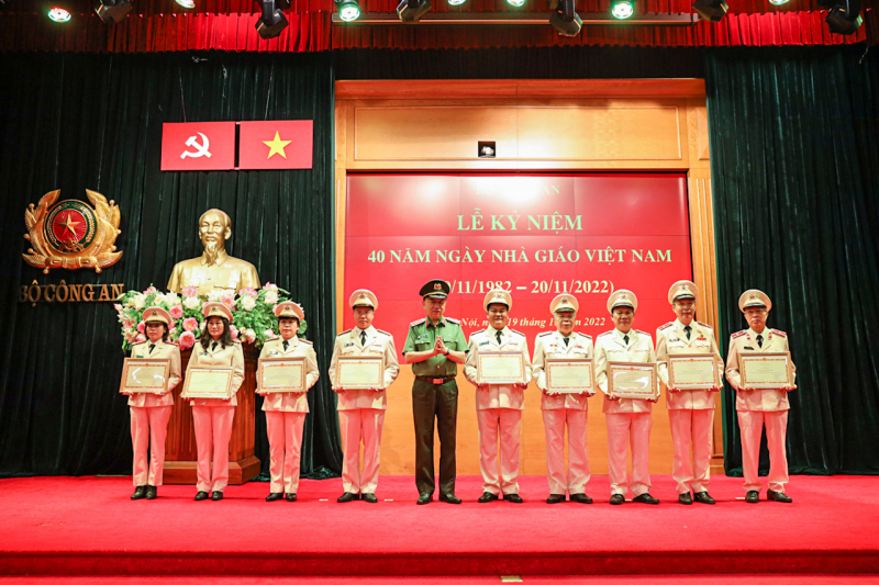 Trong năm 2022, lực lượng CAND có thêm 2 nhà giáo được Bộ trưởng Bộ GD&ĐT tặng Bằng khen; có 47 nhà giáo vinh dự được công nhận đạt tiêu chuẩn chức danh Giáo sư, Phó giáo sư trong năm 2021, 2022 và 35 nhà giáo đạt danh hiệu “Giảng viên dạy giỏi", “Giáo viên dạy giỏi” cấp Bộ năm 2022. Bên cạnh đó, toàn lực lượng đã có 28 nhà giáo được Bộ trưởng Bộ Công an tặng Bằng khen vì đã có nhiều cống hiến, đóng góp cho sự nghiệp giáo dục, đào tạo giai đoạn 1982-2022. Đây là sự ghi nhận, đánh giá cao của Đảng, Nhà nước, ngành Giáo dục và ngành Công an đối với đội ngũ nhà giáo và công tác giáo dục, đạo tạo trong CAND. Đây không chỉ là niềm vinh dự của bản thân, gia đình các nhà giáo mà còn là vinh dự, niềm tự hào của các cơ sở đào tạo, học viện, nhà trường và toàn lực lượng CAND.