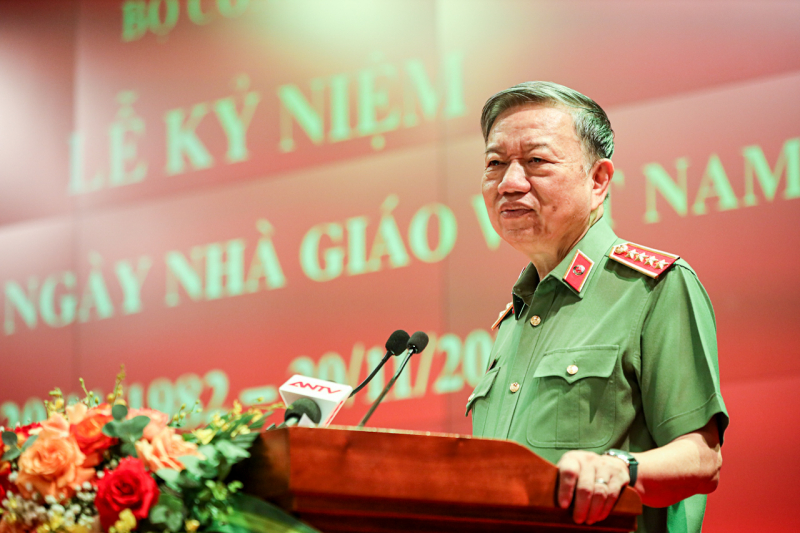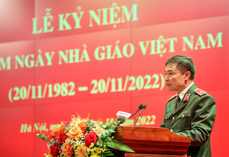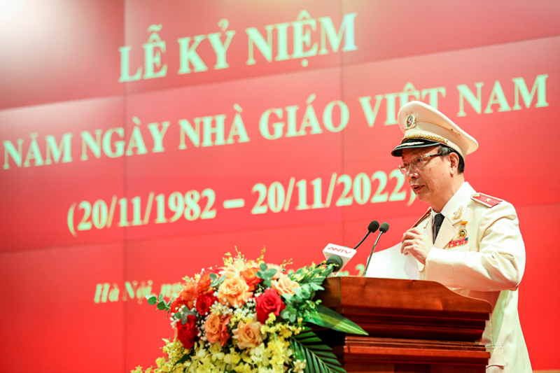 Phát biểu tại lễ kỷ niệm, thay mặt Đảng ủy Công an Trung ương, lãnh đạo Bộ Công an, Đại tướng Tô Lâm ghi nhận, trân trọng cảm ơn và biểu dương những nỗ lực, đóng góp tích cực, có hiệu quả của các thế hệ nhà giáo đối với sự nghiệp giáo dục, đào tạo ngành Công an; chúc mừng các nhà giáo được công nhận đạt tiêu chuẩn chức danh Giáo sư, phó Giáo sư năm 2021, 2022 và đạt danh hiệu “Giảng viên dạy giỏi’, “Giáo viên dạy giỏi” cấp Bộ năm 2022.